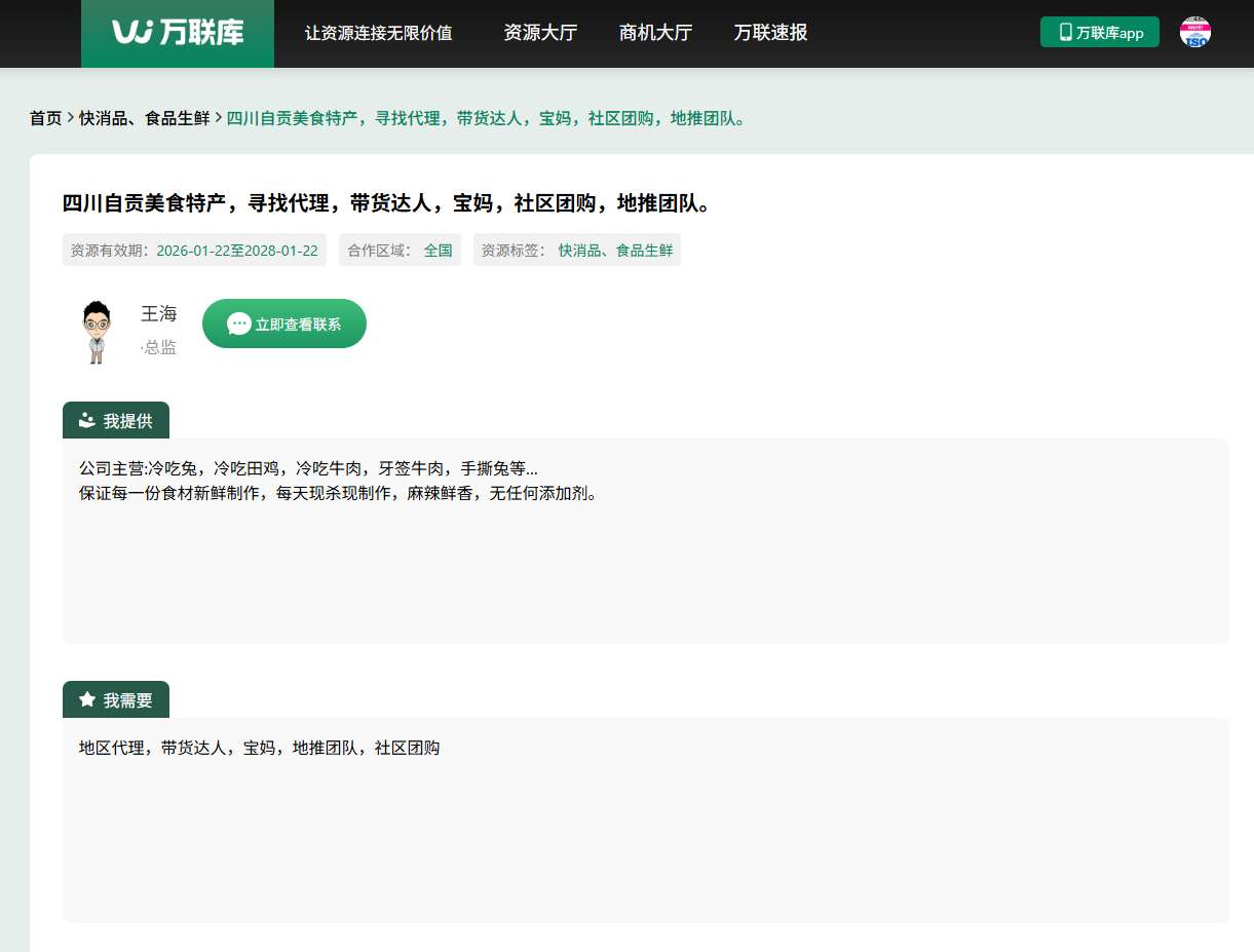 在实际项目对接中,不少商家会通过万联库这类地推拉新、兼职副业、货源招商、推广变现商机发布与资源对接平台,去对接全国代理、带货达人和社区资源,本质就是在解决同一个问题:
