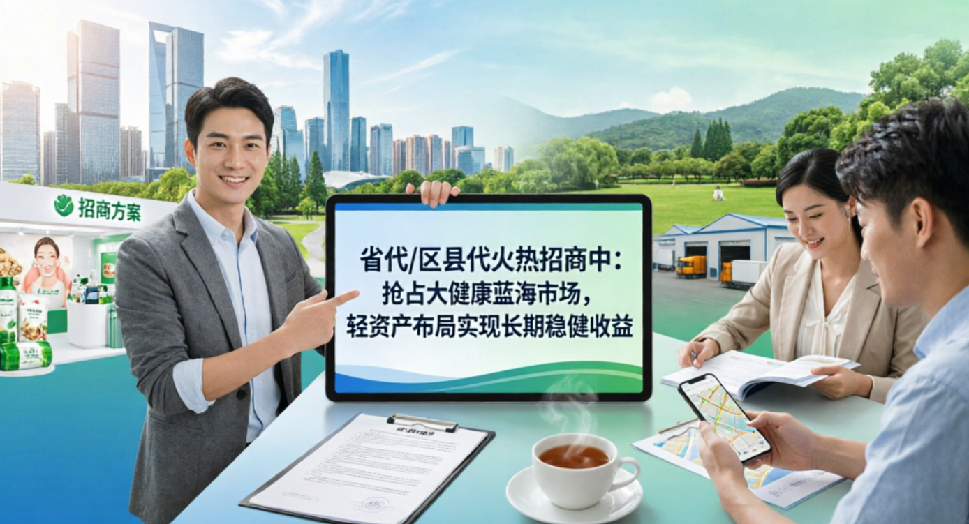 本项目现面向全国开启:省级代理 / 区县代理火热招商,通过成熟模式+总部全程扶持,帮助合作伙伴低门槛切入大健康赛道,实现稳步发展与持续变现。