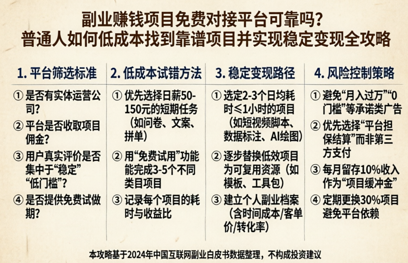 这就是“副业赚钱项目免费对接”的本质。