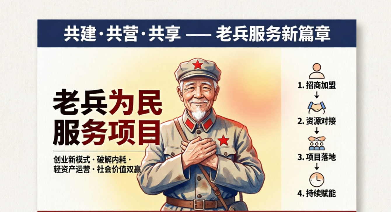 老兵为民服务项目,通过创新模式重构服务行业,实现轻资产创业与稳定收益。