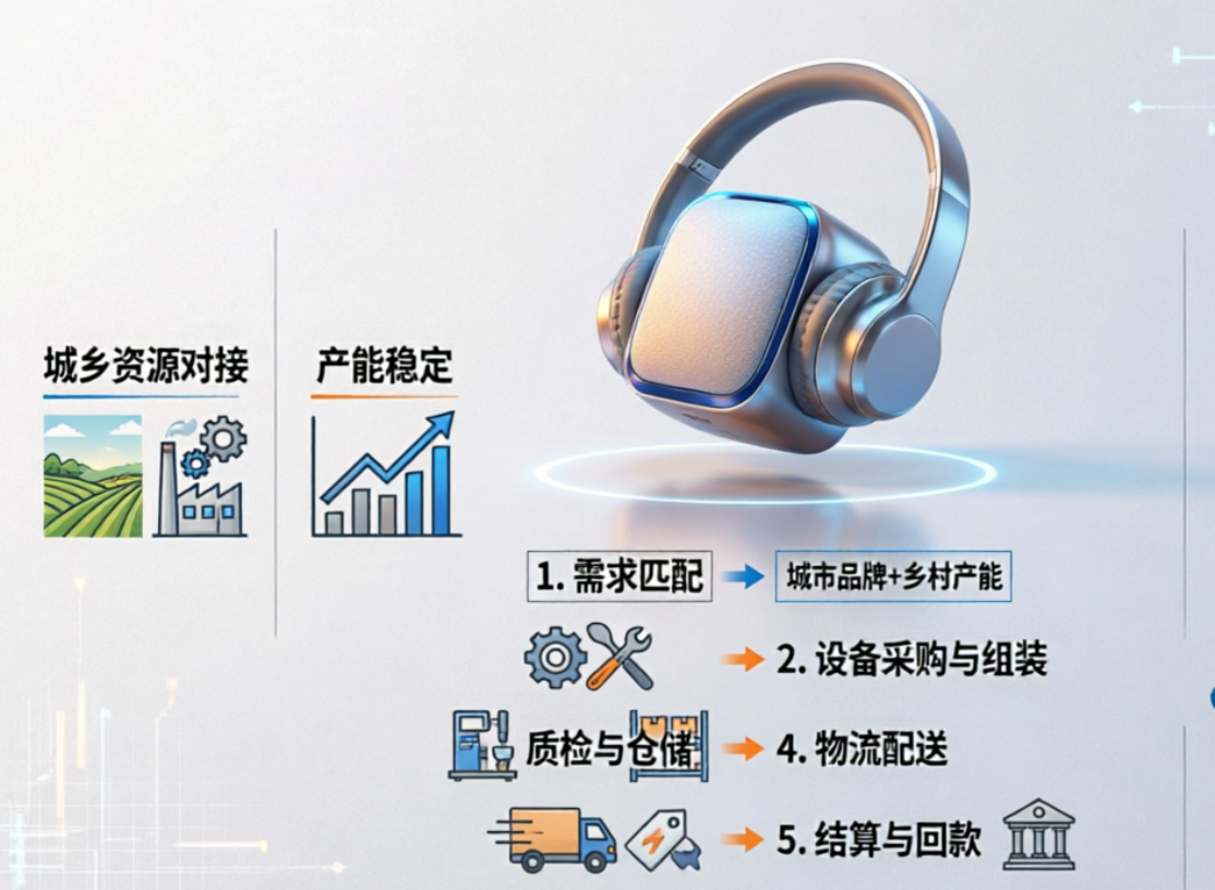 蓝牙音箱与耳机加工合作,通过城乡资源对接,实现产能稳定与长期收益。
