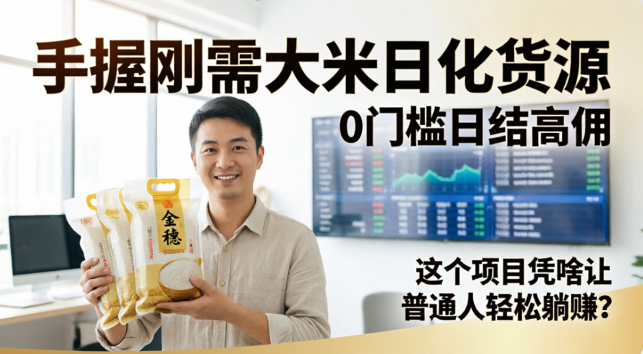 在这个充满不确定性的时代,你是不是也常常感到焦虑?看着银行卡里的余额,担心下个月的房贷车贷,害怕突如其来的裁员通知,更不想每天朝九晚五累死累活却只拿着微薄的死工资。我们都在拼命寻找一个突破口,一个能让自己、让家人过得更好的机会。可是,市面上的项目五花八门,有的要囤货压资金,有的要拉人头搞传销,有的做两天就跑路,坑太多,心太累。其实,真正能长久赚钱的生意,往往就藏在我们每天离不开的柴米油盐里。今天,我要给你拆解一个被无数人低估,却能让你稳稳当当把钱赚了的“隐形金矿”——那就是手握刚需大米、日化用品的一手货源,做那个连接工厂与家庭的“超级连接器”。