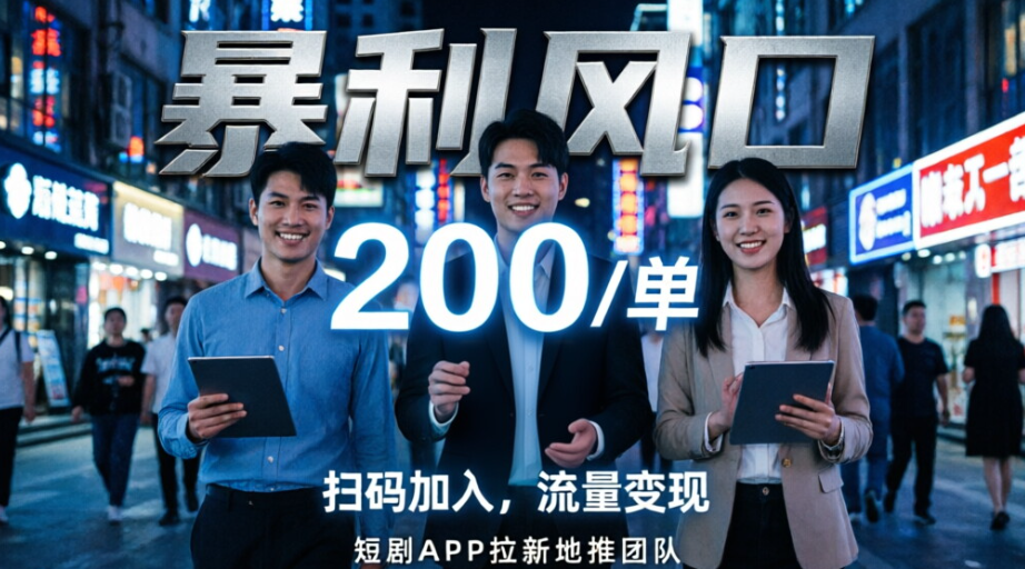 现在的地推圈子里,是不是到处都弥漫着一种“内卷”到绝望的味道?你辛辛苦苦在街头摆摊,磨破了嘴皮子送一堆小礼品,最后算下来一单才赚几块钱,甚至连摊位费都赚不回来。看着手里堆积如山的库存,再看看微信里那些所谓的“项目方”发的各种扣量、克扣佣金的通知,你是不是无数次问过自己:难道地推这行真的没前途了吗?其实,不是地推没前途,是你选错了赛道!当别人还在为了几块钱的佣金在红海里拼命的时候,聪明人早就悄悄转战到了“短剧拉新”这个暴利蓝海。今天,我要给所有还在迷茫的地推人、团队长们透个底:短剧APP拉新下载,一单起步就是100块,量大有机会冲到200块!这不是画大饼,这是2026年最真实的流量变现红利。