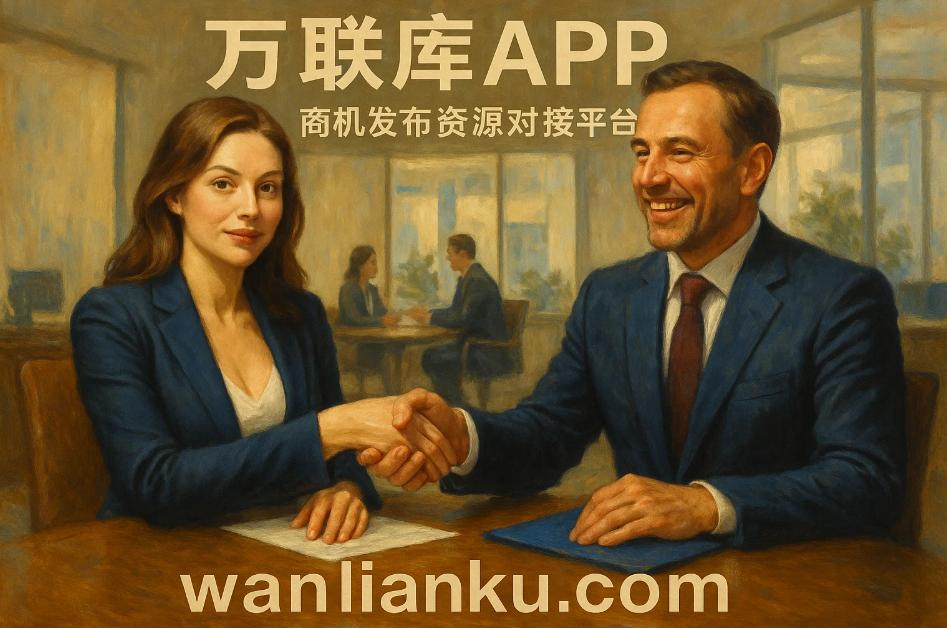 而整套方法论中最核心的一步,就是利用**万联库(APP / 小程序 / PC端)**进行资源发布,让商家主动来找你,而不是你苦苦到处加群、求商家给机会。